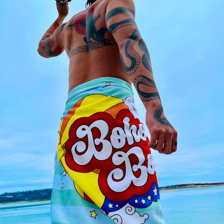 Bring some cosmic vibes to your beach day with our Sun & Moon Cabana Towels! These oversized towels feature the iconic Boho Boys® Sun & Moon logo, paired with a playful cosmic motif, making them the perfect blend of tropical fun and retro charm. Available in a variety of vibrant tropical colors, these towels are made for those who love to mix and match their style.
